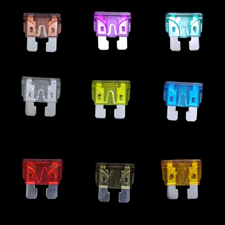 رنگبندی استاندارد برای تشخیص سریع آمپر (مطابق استاندارد فیوزهای تیغهای).