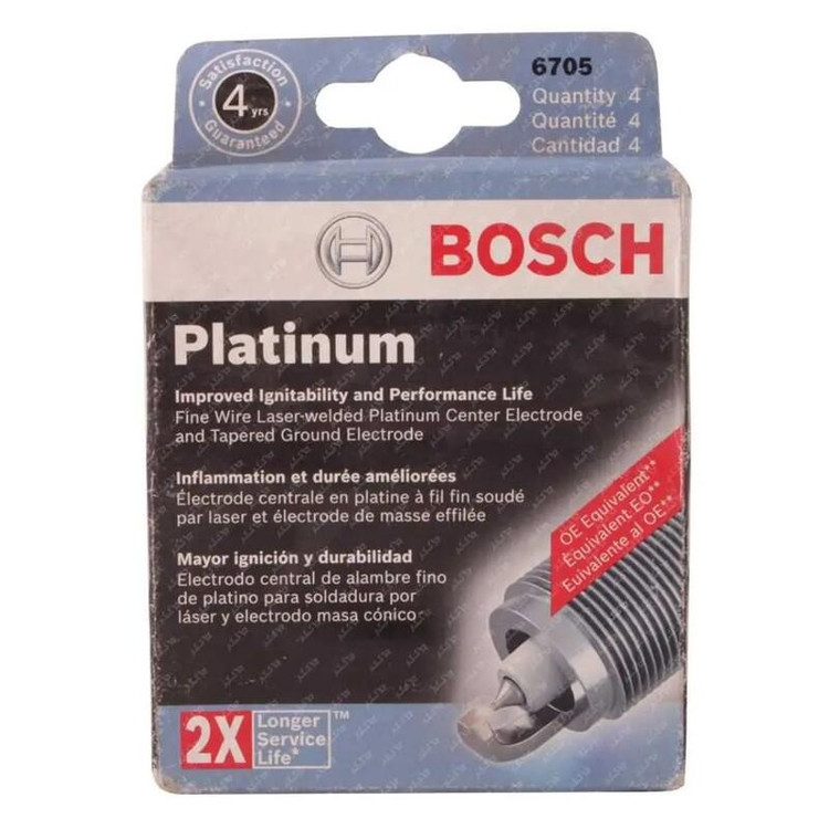 این محصول از سری پلاتینیوم یا به عبارتی پلاتینیوم ُسوزنی میباشد،شرکت بوش این محصول را با ویژگی های اصلاح شده نسبت به نسل قبلی طراحی نموده است که در ادامه توضیح خواهیم داد،ویژگی های بارز این محصول که در نگاه اول به چشم میخورد،الکترود سوزنی شکل آن است که از جنس پلاتینیوم خالص با قطر 0.6 میلیمتر میباشد،این نسل با بهره گیری از پلاتین خالص به مراتب بهتر از سایر پلاتینیوم ها میباشد،در این روش الکترود مقاوم تر و دارای طول عمر بیشتر نسبت به شمع های مشابه در کلاس پلاتینیوم میباشد،تفاوت بارز پلاتینیوم بوش نسبت به نسل الکترود معمولی عمر دو برابر ان میباشد،در این محصول از ابکاری با نیکل استفاده شده است،این مزیت باعث جلوگیری از گریپاژ شمع موتور در داخل سیلندر به مرور زمان میشود.ویژگی دیگر پلاتینیوم بوش استفاده از چینی الومینیم سیلیکات چندلایه و شیار دار برای جلوگیری از رسیدن به دمای شکست یا به عبارتی قطع شدن شمع میشود. الکترود منفی این محصول از جنس نیکل میباشد،نیکل اگرچه به کیفیت پلاتینیوم نیست اما در کلاس خود به دلیل استفاده از ایتریم اضافی عملکرد خوبی داشته است،داشتن هسته مسی دیگر ویژگی این محصول میباشد،هسته مسی در داخل شمع موتور مانند یک مبدل حرارتی عمل میکند و شمع موتور را همواره در دمای تعریف شده نگه میدارد و مانع احتراق زودرس و کربن شدن الکترود و استفاده از واشر و ابکاری شده با نیکل مانع نشت هوا از بلوک سیلندر میشود. ویژگی های خاص پلاتینیوم سوزنی نسبت به شمع های معمولی : کاهش مصرف سوخت افزایش چشمگیر شتاب خودرو کارکرد بسیار ارام موتور سایز: این شمع موتور ارتفاع پایه آن 19 میلیمتر میباشد که در اصطلاح عامیانه پایه استاندارد گفته میشود،سایز آچار آن 16 میلیمتر یا 5/8 اینچ میباشد که در اصطلاح عامیانه یعنی با آچار 16 میتوان این شمع را نصب کرد ،سایز رزوه آن 14 میلیمتر میباشد و در اصطلاح عامیانه سایز سر سیلندر میباشد که شمع موتور در داخل آن بسته میشود.ترمینال شمع ثابت میباشد بدین معنی که محلی که وایر روی آن نصب میشود پیچی نیست و فقط وایر های نوع ترمینال بزرگ به این شمع موتور متصل میشوند. این شمع مناسب برای بیشتر خودروهای که در آن از شمع پایه کوتاه استفاده شده است میباشد مناسب موتورهای گرم حتی ef7